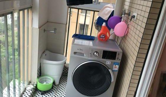 阳台滚筒洗衣机用起来很方便,洗衣晾衣都是在这里,